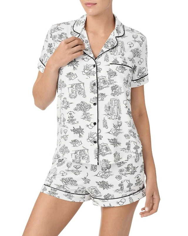 Zen Floral Lace-Trim Short Sleeve Pajama Set