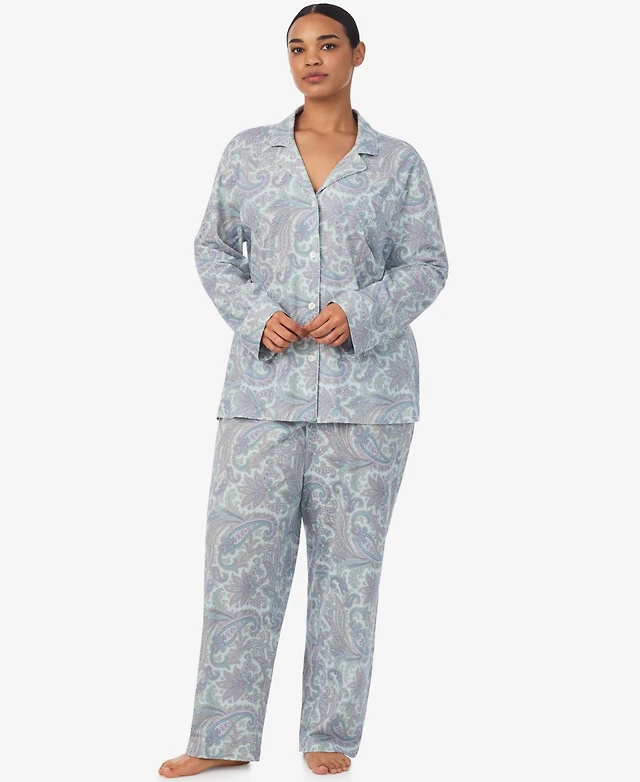Lauren Ralph Plus 2-Piece Long Sleeve Top and Pants Pajama Set