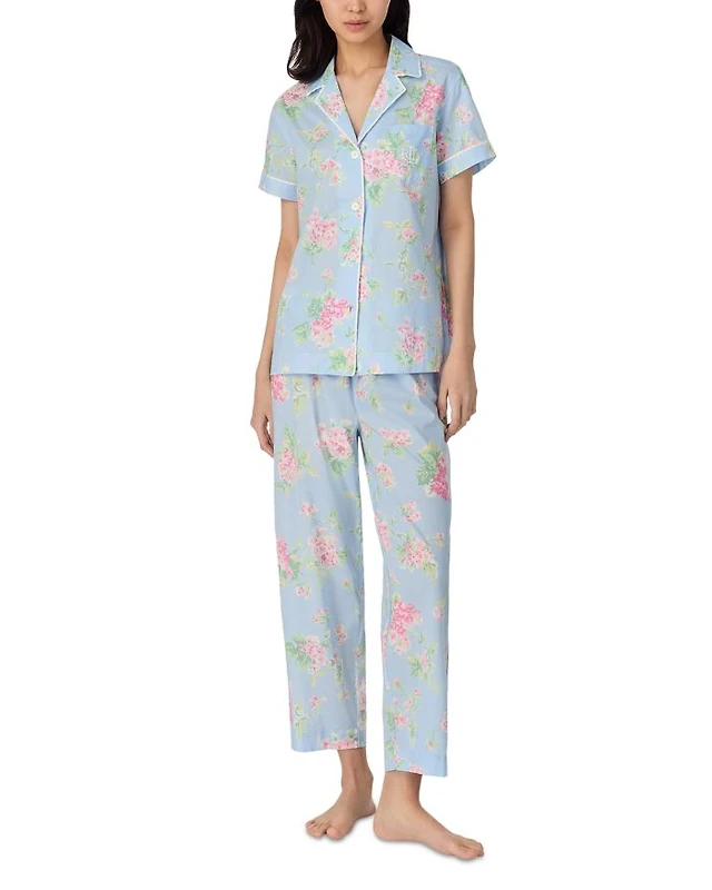 Floral Short Sleeve Notch Collar Cropped Pant PJ Set