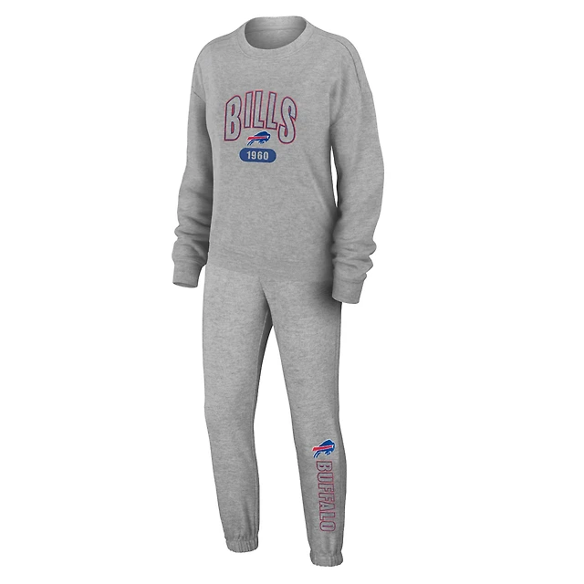 Women's WEAR by Erin Andrews Heather Gray Buffalo Bills Knit Long Sleeve Tri-Blend T-Shirt & Pants Sleep Set