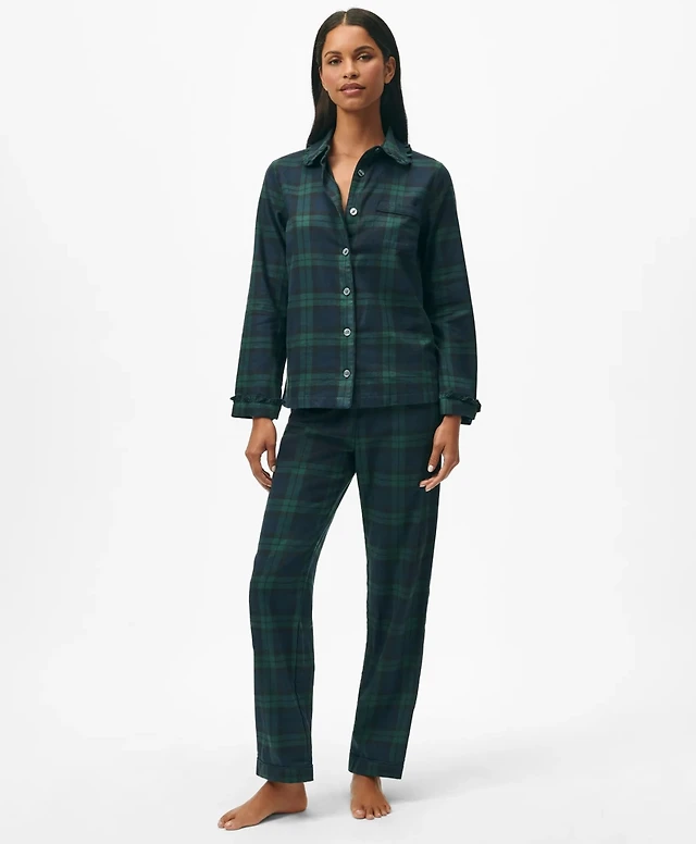 Lands' End Women's Long Sleeve Flannel Patchwork Pajama Top