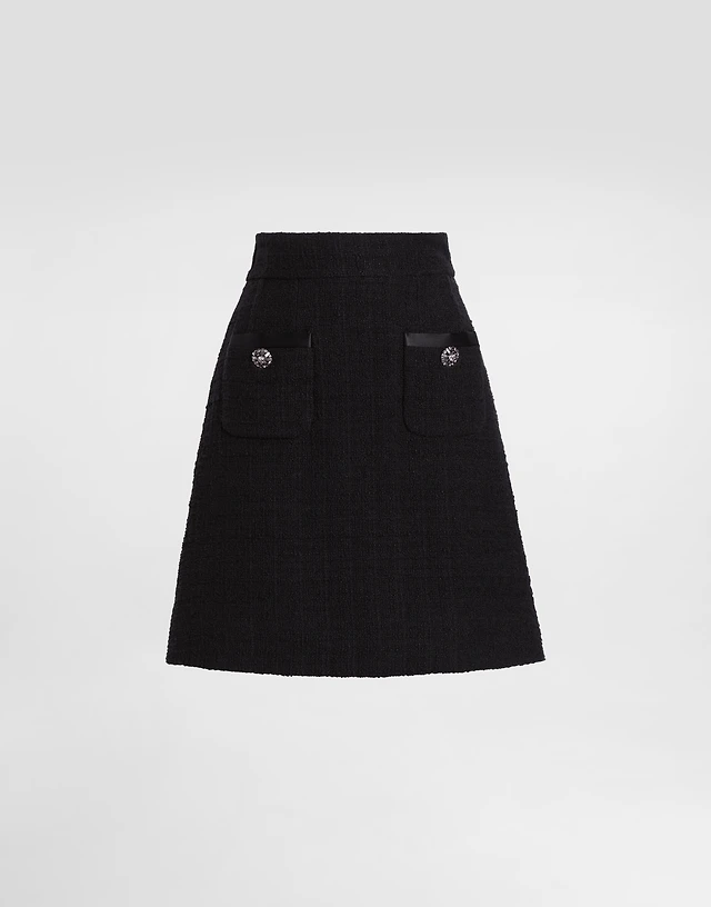 Women's pencil skirt dark blue wool with gold heraldic buttons