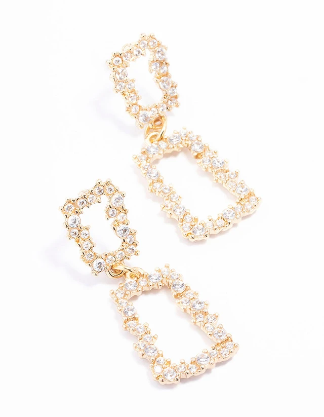 Gold Plated Rectangle Cubic Zirconia Cluster Drop Earrings