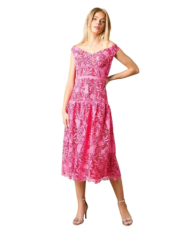 Miss Circle Women's Pallas Pink Lace Trim Crochet Mermaid Maxi Dress
