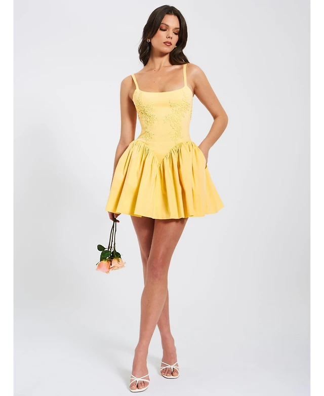 Miss Circle Women's Kadi Yellow Cotton Drop Waist Corset Mini Dress