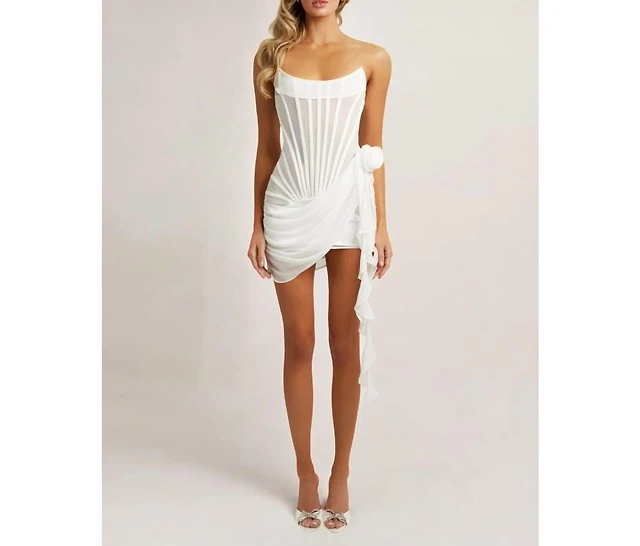 Mac Duggal Women's Strapless Beaded Applique Mermaid Gown With Flower