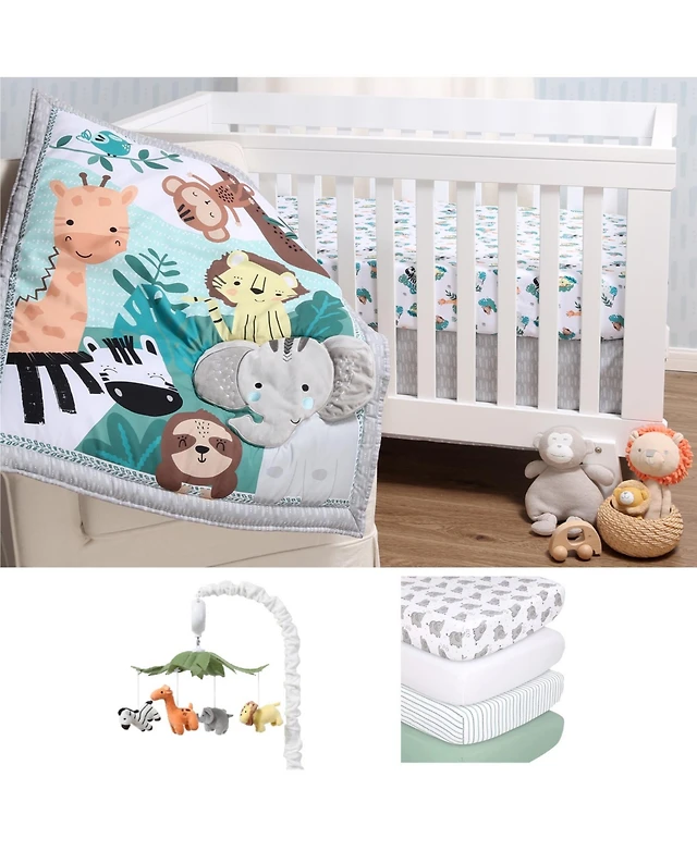 The Peanutshell Safari Adventures 8 Piece Baby Nursery Crib Bedding Set, Quilt, Crib Sheets, Crib Skirt, and Mobile
