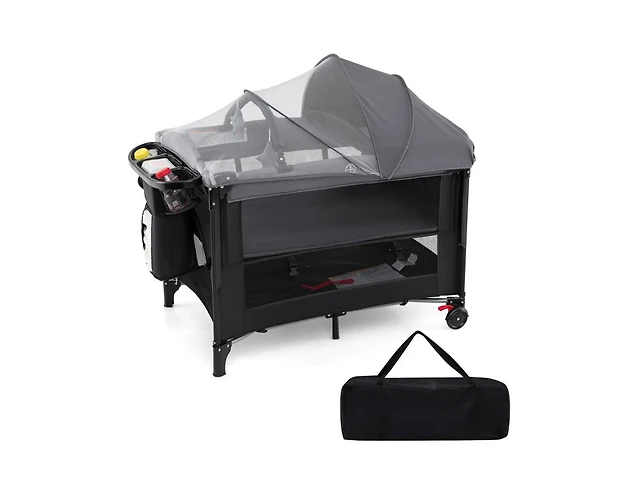 Costway Kids Portable Playard Nursery Center Crib with Hanging Toys & Music Box Unisex 0-3 Years