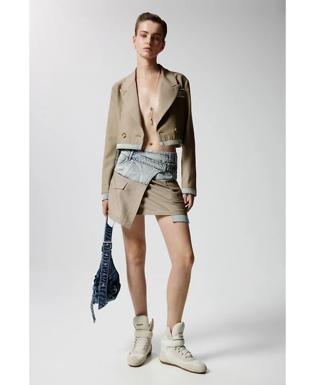 Women’s double-breasted blazer sand with gold heraldic buttons