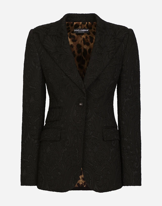 Cotton Blend Floral Jacquard Peak Lapel Jacket