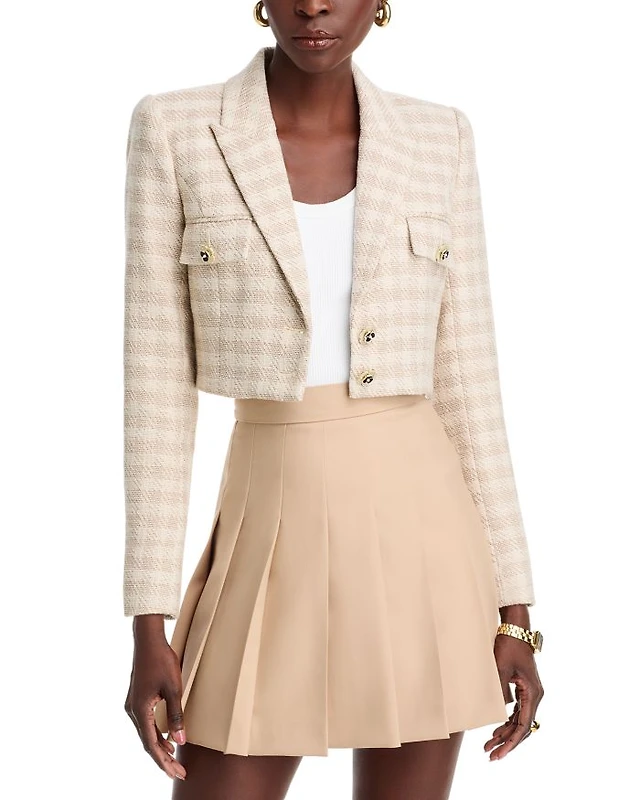 Textured Herringbone Cropped Slim Patch Pocket Blazer