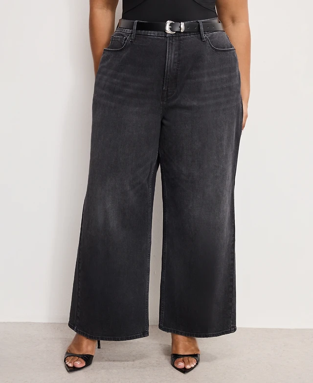 Good American Women's Weightless Skate Cropped Wide-Leg Jeans