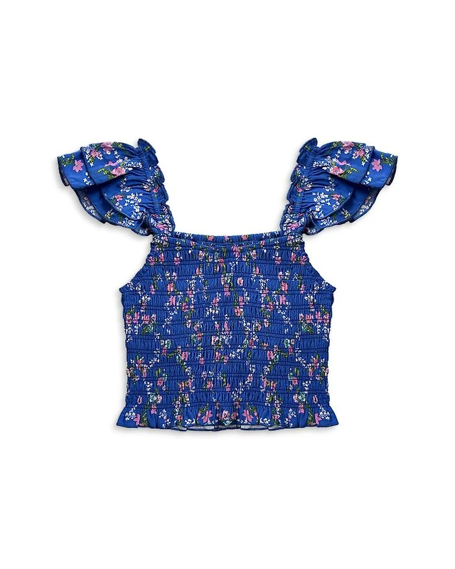 Girls' Pink Bows Stretch Ruffle Sleeve Crop Top - Little Kid, Big Kid