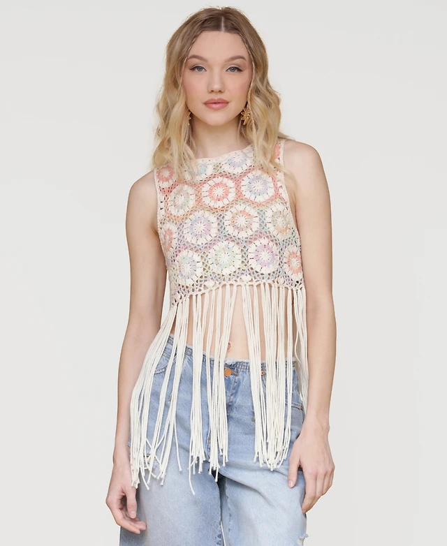 Avec Les Filles Women's Crochet Fringe-Hem Crop Top