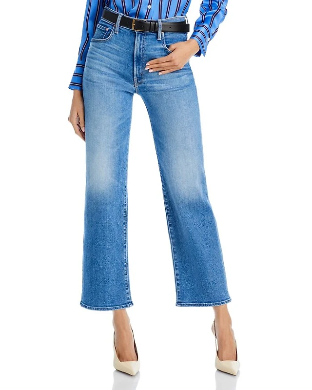 High Waisted Medium Wash Raw Hem Wide Leg Ankle Jeans