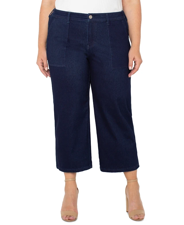 Liverpool Plus Cropped Wide-Leg Denim Cargo Pants