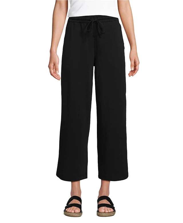 Lands' End Women's Plus Sport Knit Elastic Waist Wide Leg Crop Pants