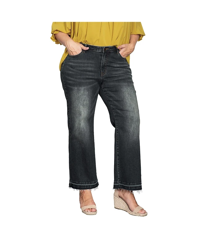 Poetic Justice Plus Curvy-Fit Frayed Cropped Ankle Jeans