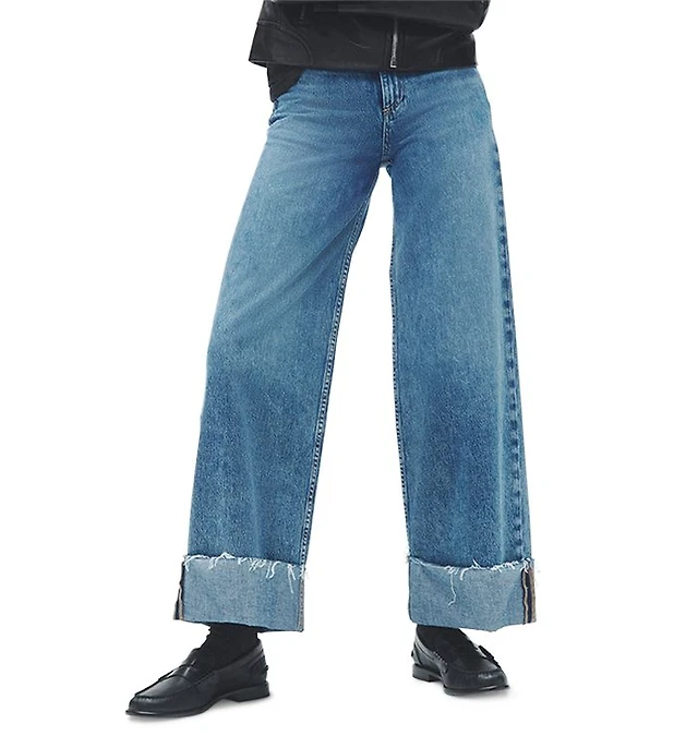 Vervet Women's High Rise Two Buttons Crop Wide Leg Jeans