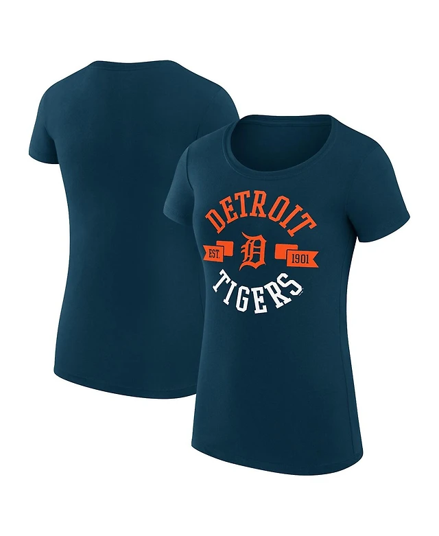 Fanatics Women's Blue Detroit Lions Plus Rhinestone Redzone Athena Lace-Up Notch Neck T-Shirt