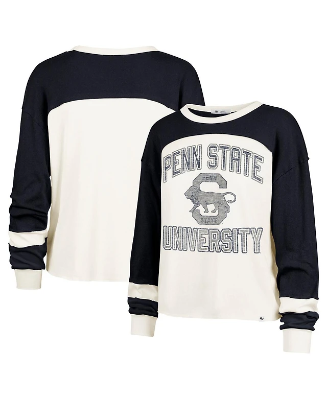 '47 Brand Women's Cream/Royal Seattle Seahawks Plus Double Header Curve Toni Long Sleeve T-Shirt