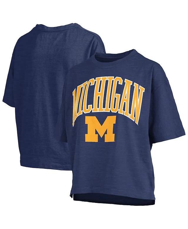Pressbox Women's Navy Michigan Wolverines Nelson Arch Over Logo Waist Length Oversized Slub T-Shirt