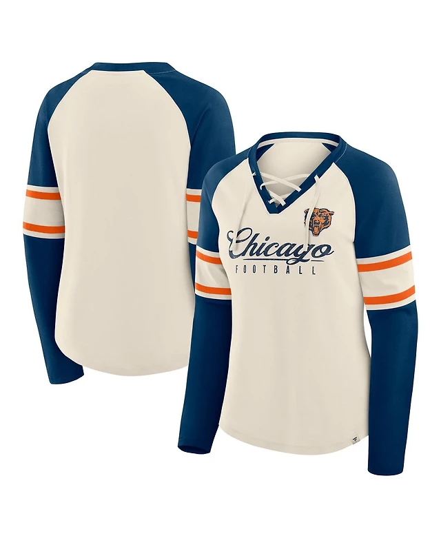 Fanatics Women's Cream/Navy Chicago Bears Hometown Gridiron Hero Raglan Lace-Up V-Neck Long Sleeve T-Shirt