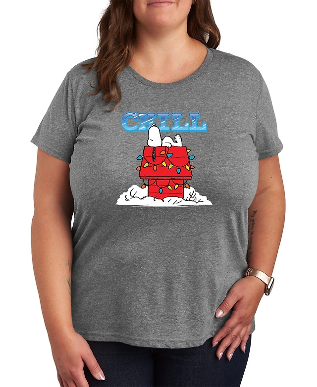 Hybrid Apparel Trendy Plus Peanuts Holidays Graphic Pullover T-shirt