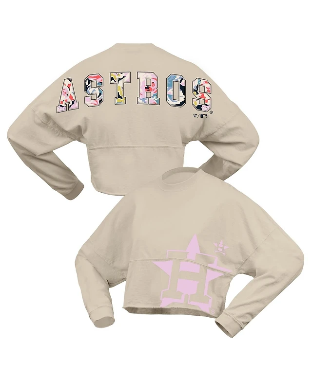 Fanatics Women's Cream Houston Astros Floral Preppy Cropped Long Sleeve T-Shirt