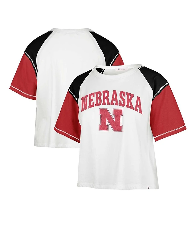 Women's '47 Brand White Distressed Nebraska Huskers Serenity Gia Cropped T-shirt
