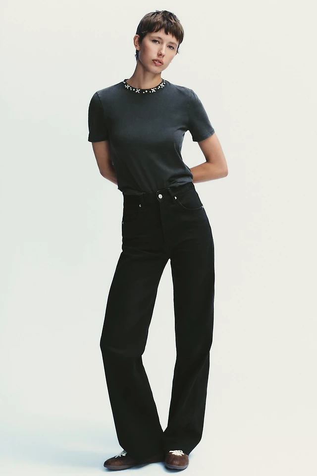 Lucky Brand Women's Beaded Lotus Crewneck Cotton T-Shirt
