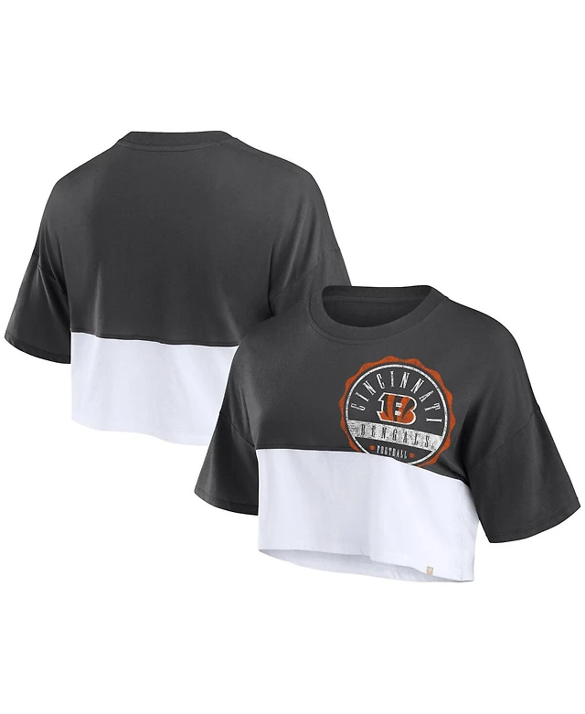 Fanatics Women's Black/White Philadelphia Eagles Boxy Color Split Cropped T-Shirt