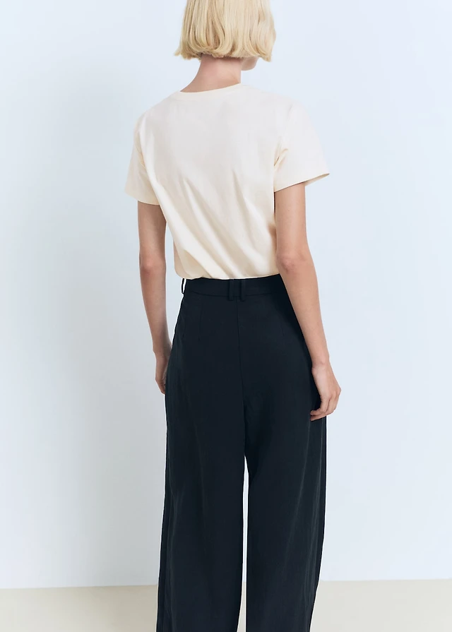 Short-sleeved t-shirt with ruffled eyelet embroidery detail