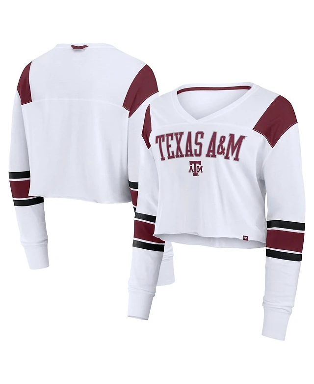 Fanatics Women's White Texas A&M Aggies Training Camp Cropped Long Sleeve V-Neck Fashion Top