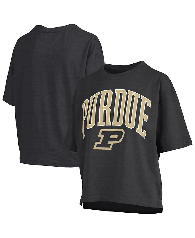 Pressbox Women's Black Purdue Boilermakers Nelson Arch Over Logo Waist Length Oversized Slub T-Shirt