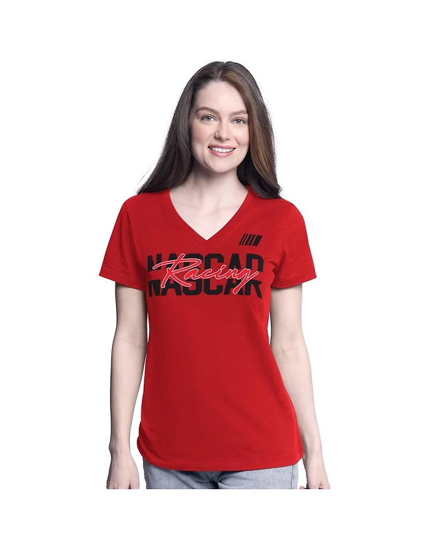 G-iii 4Her by Carl Banks Women's Red Nascar Batter Up V-Neck T-Shirt