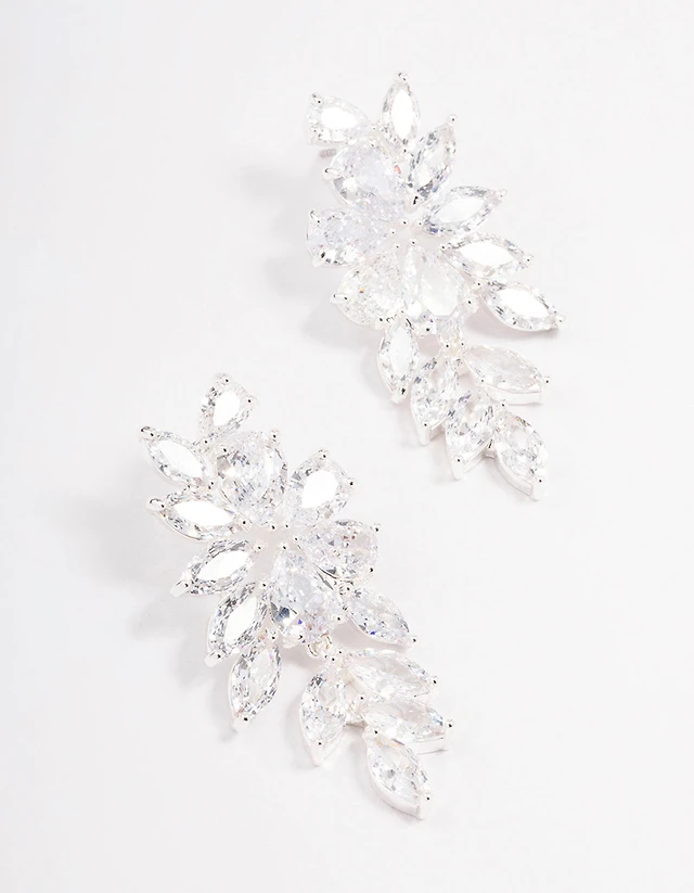 Silver Diamond Simulant Detail Pear Drop Earrings