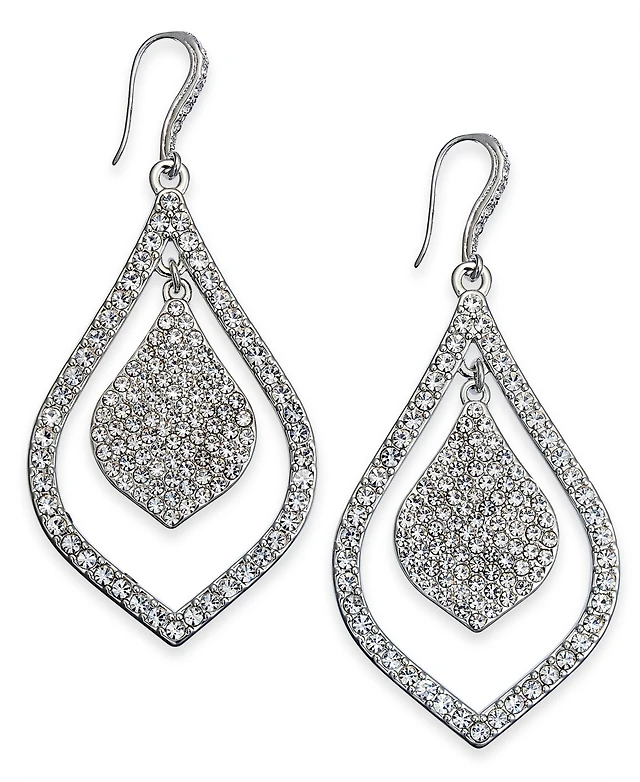 I.n.c. International Concepts Silver-Tone Crystal Pave Double Teardrop Drop Earrings, Created for Macy's