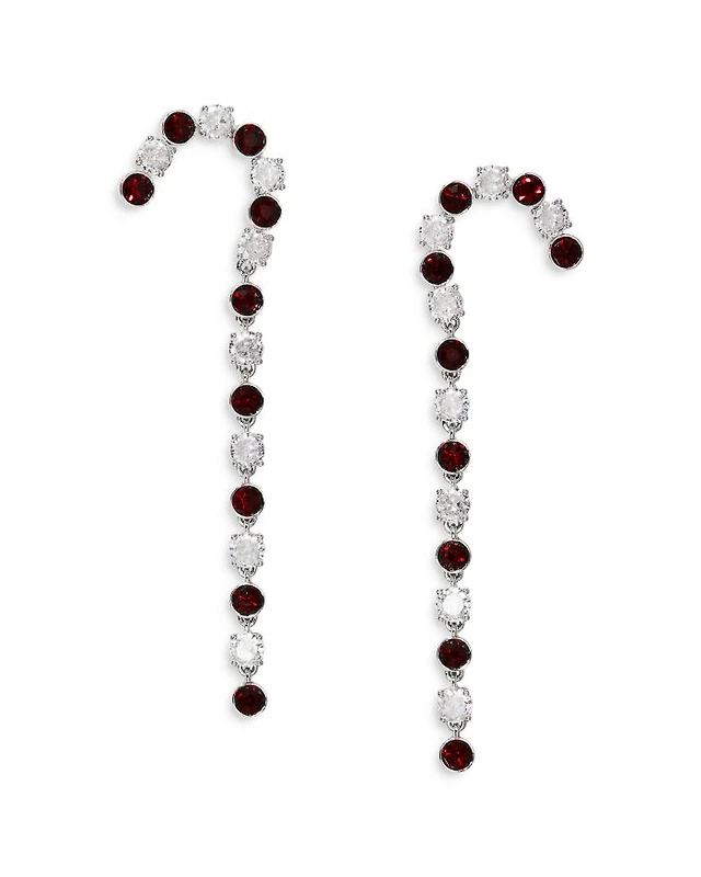 Silver-Tone Red & White Crystal Candy Cane Drop Earrings
