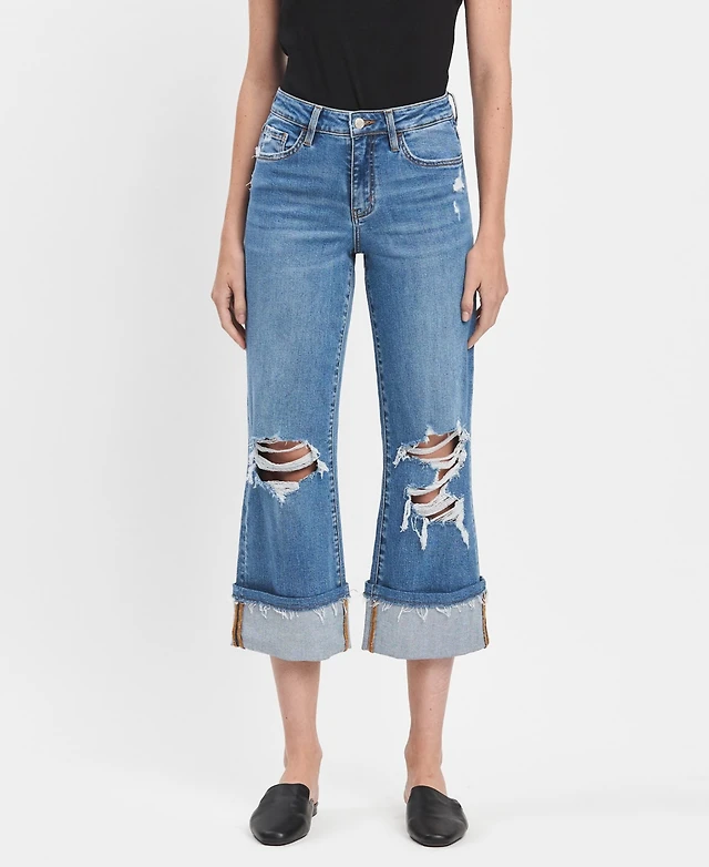 June + Vie Women's Wide-Leg Cropped Cuffed Jeans