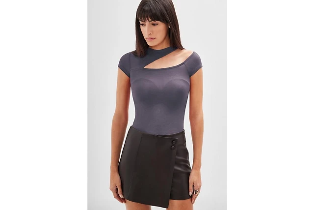 SATIN EFFECT CUTOUT SLEEVE TOP