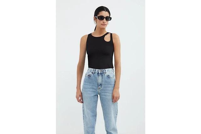 Central Park West Women's Milan Leather Accent Sleeveless T-Neck