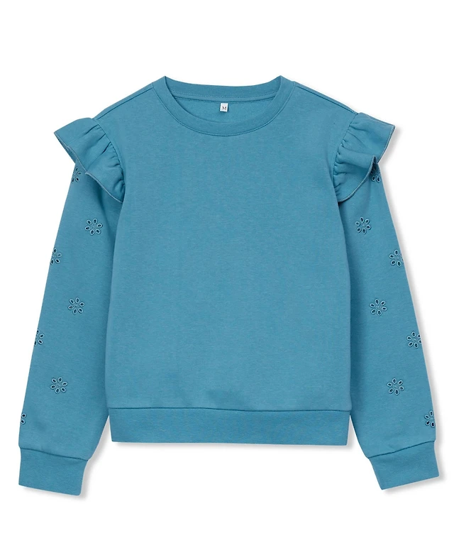 Lands' End Girls Long Sleeve Cozy Fleece Ruffle Eyelet Sweatshirt