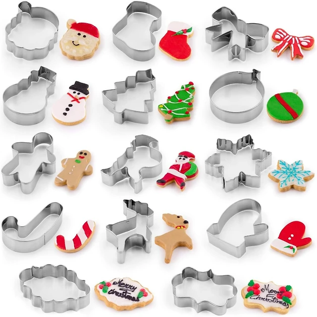 (14-Pieces) Metal Christmas Cookie Cutters - Stainless Steel Christmas Cookie Cutters With Folded Edges