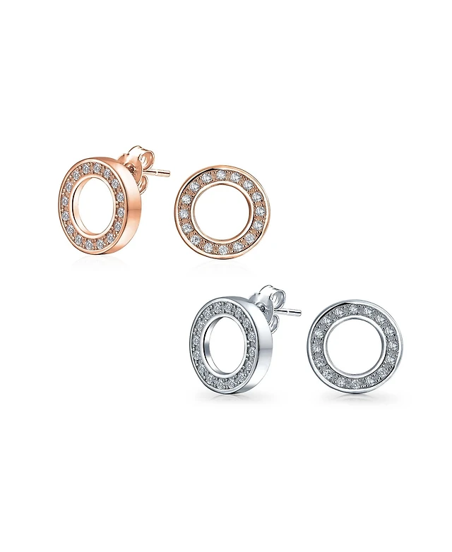 Bling Jewelry Geometric Pave Cubic Zirconia Open Circle Round Disc O Cz Stud Earrings Rose Gold Plated .925 Sterling Silver