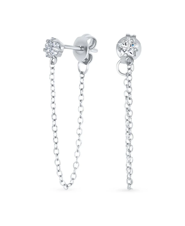 Bling Jewelry Minimalist 4MM Star Cz Stud Earrings with Delicate Chain 14K Gold or Silver