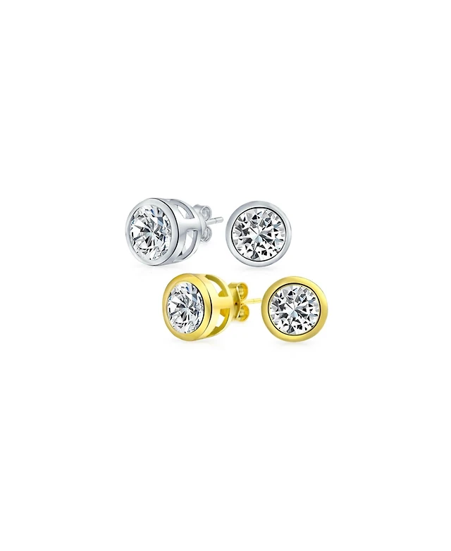 Bling Jewelry Set of 2 Simple Martini Bezel Set Cz Stud Earrings Gold Plated Sterling Silver