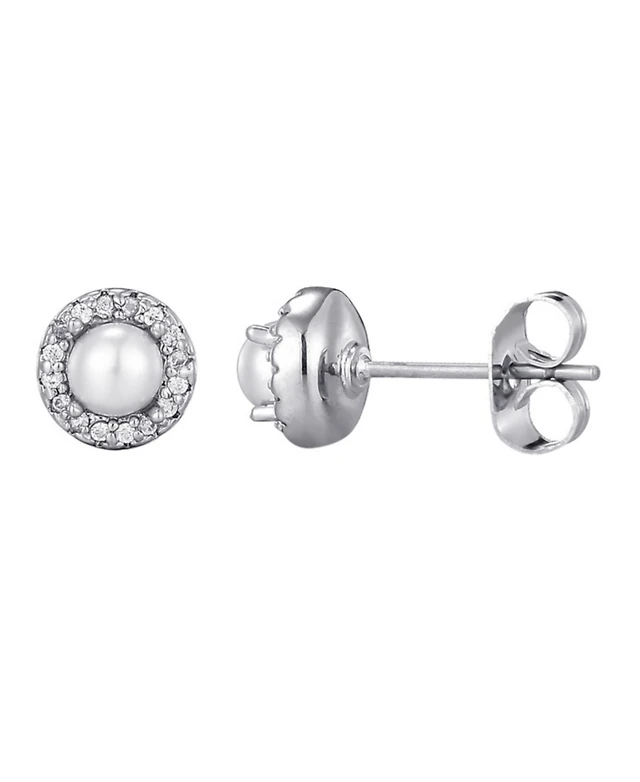 Adornia Silver Freshwater Pearl Cz Halo Stud Earrings