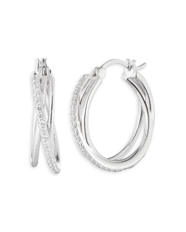Pavé Crisscross Hoop Earrings in Sterling Silver
