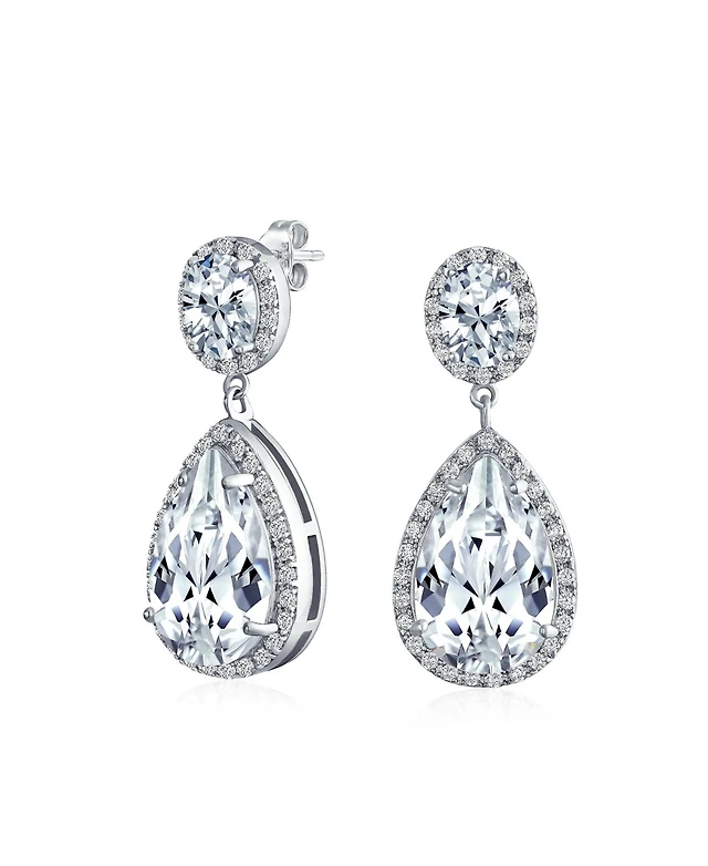 Bling Jewelry 7CT Style Halo Pink Cubic Zirconia Cz Formal Huggie Snap Hinge Dangle Drop Teardrop Earrings Rhodium Plated